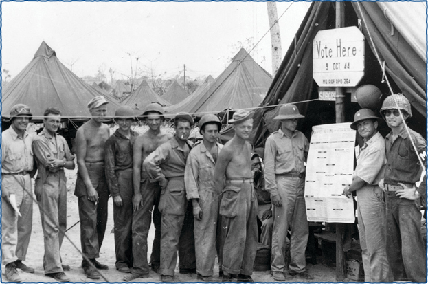 Over 16 million Americans served in uniform during World War II and it is estimated that 11 million of those service successfully cast absentee ballots by mail in the 1944 national elections.