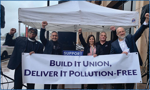 APWU joined a rally led by the UAW, Sierra Club, BlueGreen Alliance and others in 2022 to encourage USPS to invest in union-made, electric delivery vehicles.