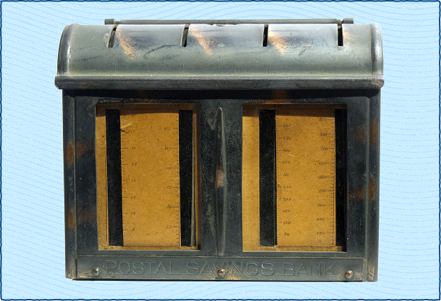 From 1911-1967, the Post Office operated a Postal Savings Bank, which allowed small depositors to securely save their money in postal accounts.