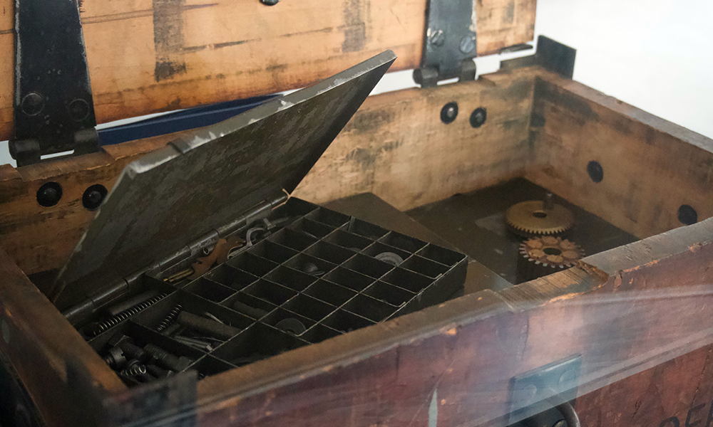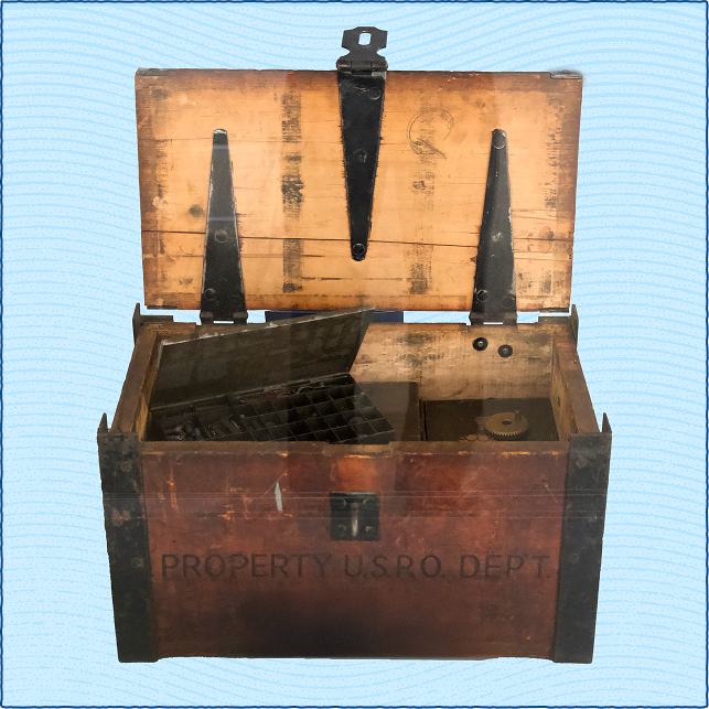 The Post Office Department began buying cancelling machines in the first decade of the 1900s, requiring postal workers to make repairs using parts in boxes such as this.