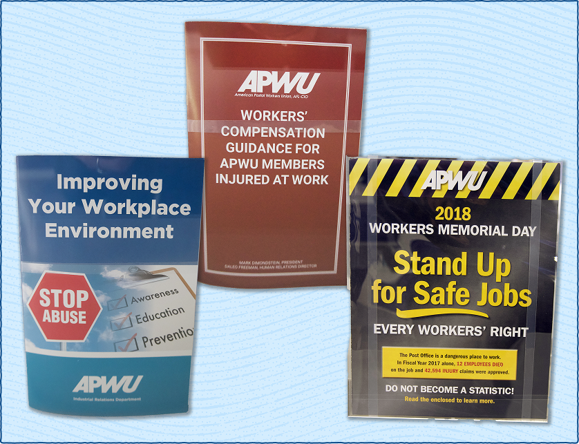 APWU ensures that management implements safety programs and policies that protect workers, reviews new equipment for ergonomics and security, and keeps track of the latest developments that affect postal workers’ health and well-being.